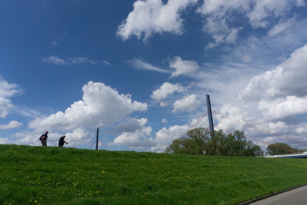 Leider ist der Deich betoniert, das ist wohl nicht zu vermeiden. Trotzdem kommt ein wenig ländliches Gefühl auf. Am Straßenrand stehen plötzlich Schilder die frische Eier, Kartoffeln und Zwiebeln zum Kauf anbieten. Leider habe ich niemanden finden können, sonst hätte ich mir ein paar frische Eier mitgenommen. Da es ein nächstes Mal bestimmt gibt hole ich das dann nach.